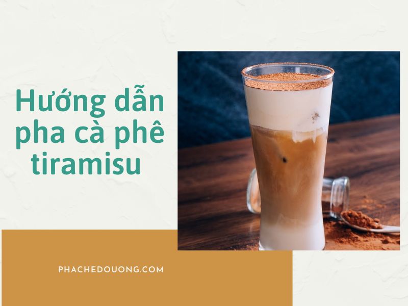 Cho 110ml sữa tươi có đường vào ly. Sau đó, trộn thêm 50g đá lạnh và 30ml nước cốt cà phê. Sau đó, cho kem tươi và sữa đã khuấy đều vào và phủ 2g bột ca cao lên trên. Vậy là bạn đã có một ly cà phê Tiramisu thơm ngon và đẹp mắt.